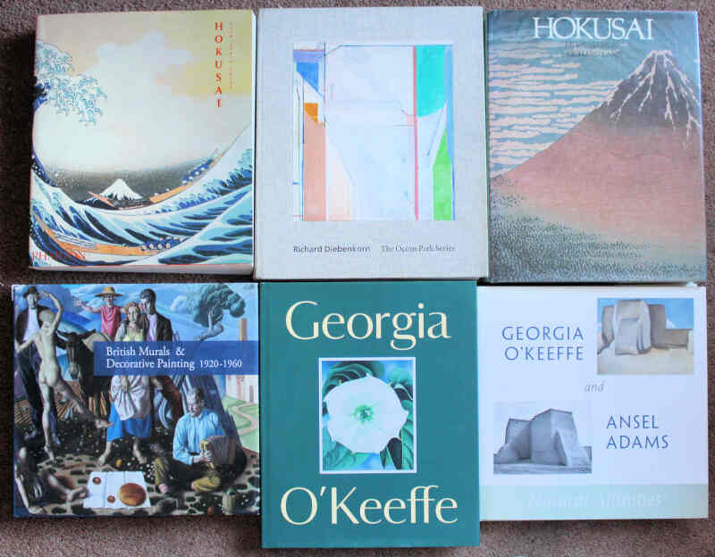 Georgia O'Keeffe and Ansel Adams: Natural Affinities Little, Brown & Co, 2008; Georgia O'Keeffe Abrams, 2016; Lane Hokusai, Life and Work 1989; Richard Diebenkorn – The Ocean Park Series 2012; British Murals & Decorative Painting 1920-1960; and another. Most in d/jkts. No inscriptions. (6)