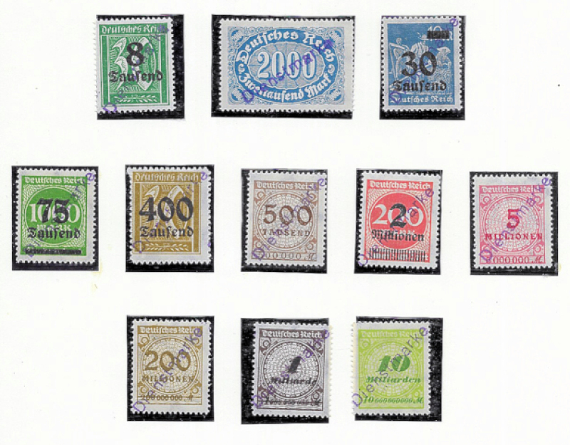 Germany 1923-25 collection of Officials, mostly fine used including 1924 von Stephan pair, STC (Michel) 205 Euro.