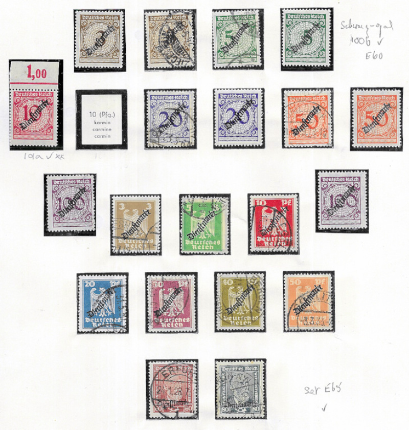 Germany 1923-25 collection of Officials, mostly fine used including 1924 von Stephan pair, STC (Michel) 205 Euro. Also mint selection of s/line Dienstmarke overprints for use in Mecklenburg. (50)
