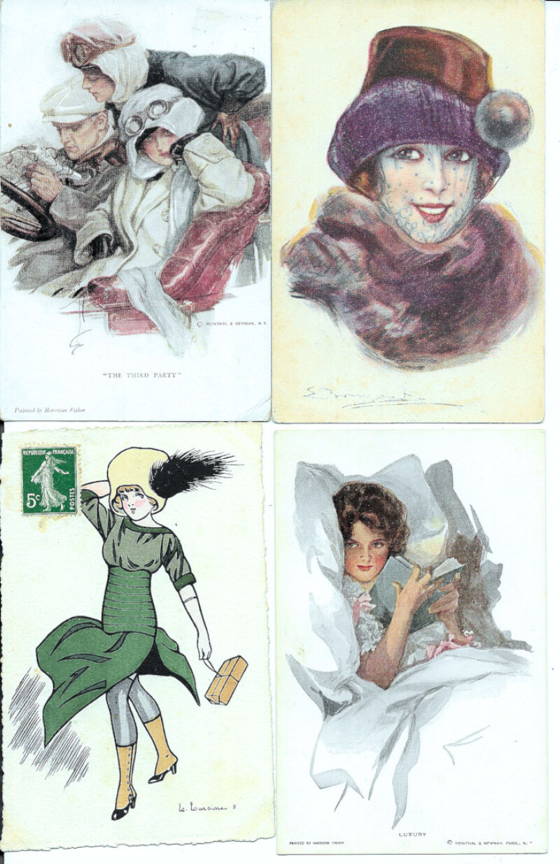Glamour & Romance selection including Wichera, Harrison Fisher (4), Corbella, Kaby, Bompard, and many photographic types with many French