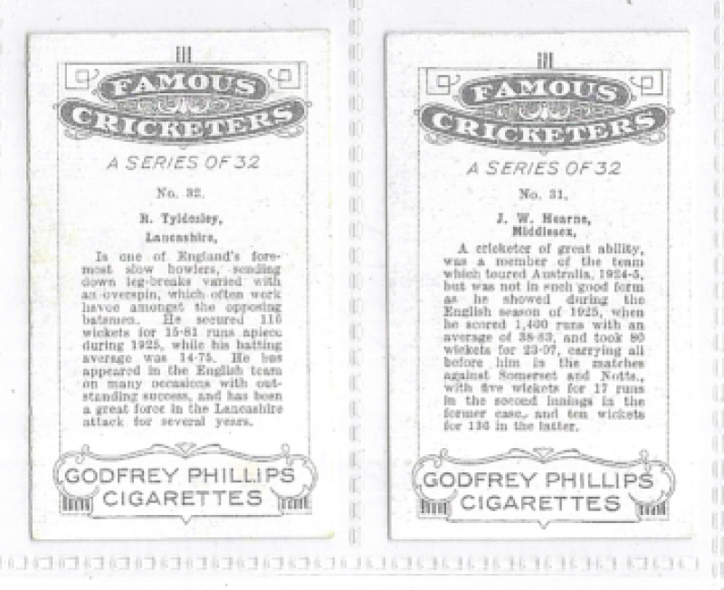 Godfrey Phillips Famous Cricketers 1926, the set of 32, in fine/excellent condition.