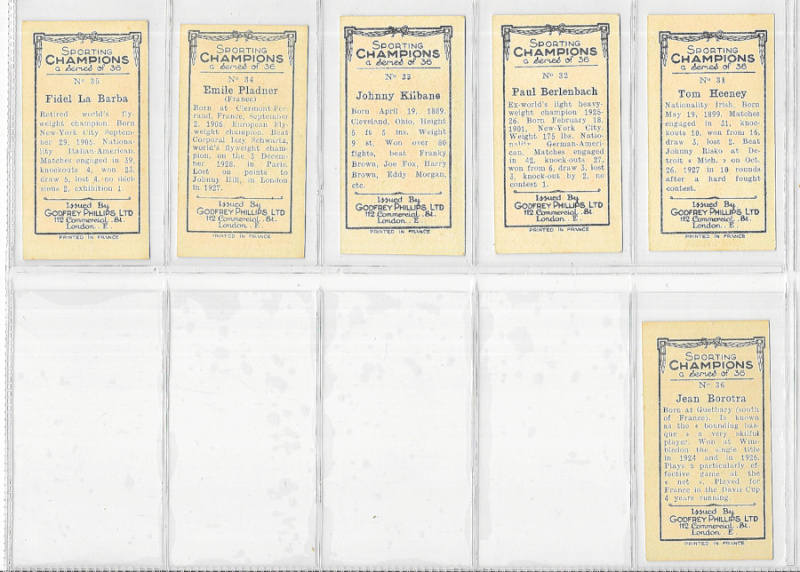 Godfrey Phillips "Sporting Champions" 1929, the set of 36, mostly VG or better including Jack Dempsey, Bill Tilden, Gene Tunney etc.