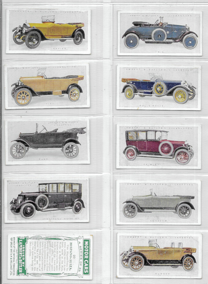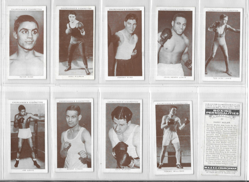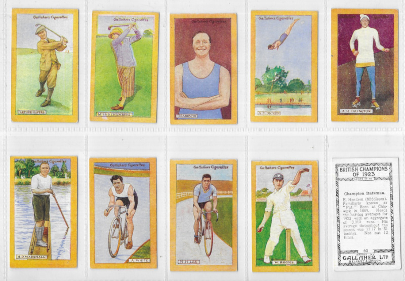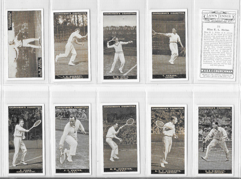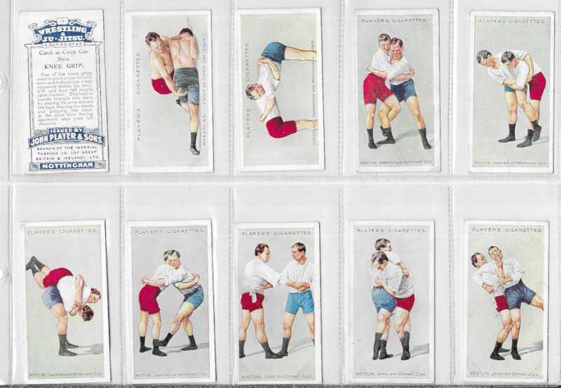 Good collection of 16 sets in modern album, including Churchman Lawn Tennis (set of 50) and Boxing Personalities; Gallaher British Champions of 1923 and Famous Jockeys; Player's Wrestling & Jiu-Jitsu 1913; Lambert & Butler Motor Cars 1922; Wills Merchant Ships; Carreras Horses & Hounds (set of 25); and Scottish C.W.S. Dwellings of All Nations. VG or better, the vast majority excellent. Cat (Murray) £830