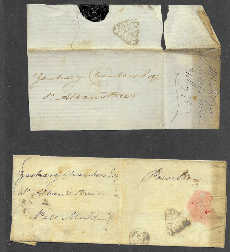 Great Britain 1770s wrappers posted in London, one with fine Dockwra of the General Post Office, other with fair Dockwra of the Westminster office