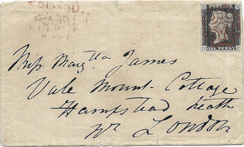 Great Britain 1840 (Dec.) wrapper from Abergavenny to London with 1d Intense Black, plate 2, ‘IF', three good margins, just into lower right corner, cancelled with a superb Maltese Cross in red.