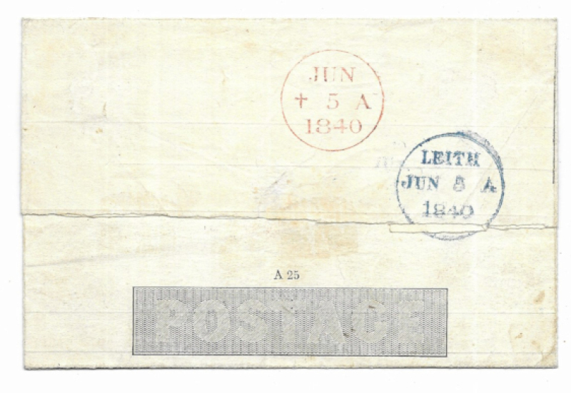 Great Britain 1840 (June) 1d Mulready Letter Sheet, stereo A25, fine used from London to Leith, with red Maltese Cross.