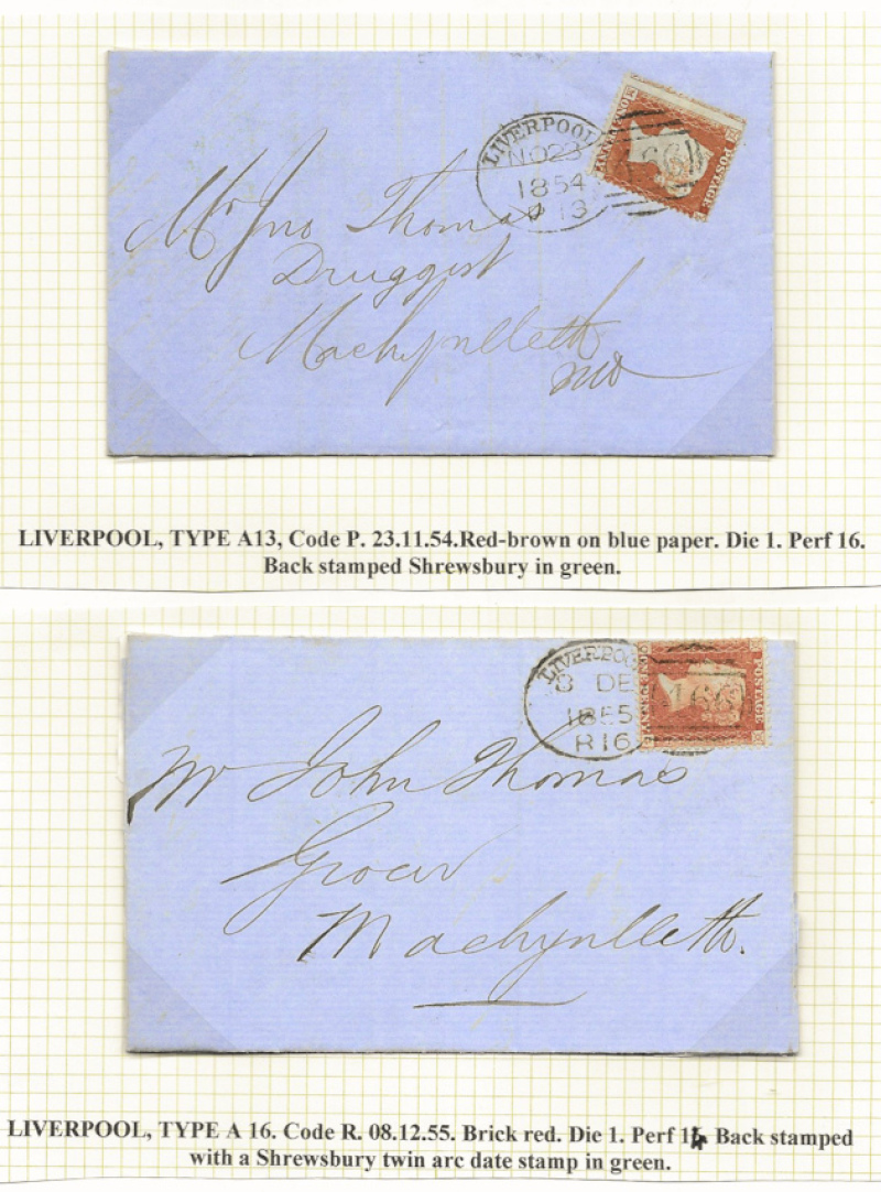Great Britain 1854-57 Els to Machynlleth with 1d reds all tied by fine LIVERPOOL Spoon cancels, various codes. (4)