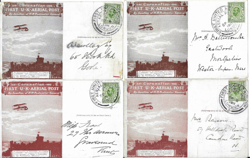 Great Britain 1911 First United Kingdom Aerial Post commemorative PCs posted September 8th to 13th with special handstamp.