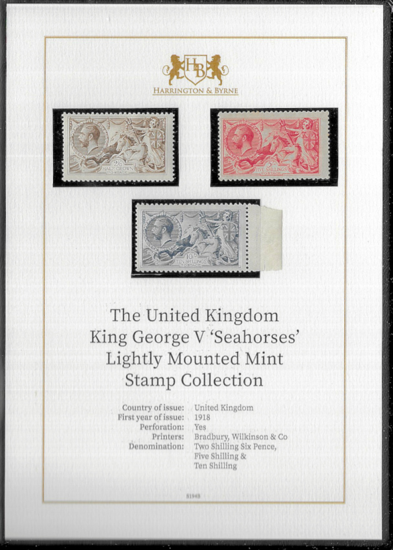 Great Britain 1918 Bradbury Wilkinson Seahorses mint, the 2s6d with hinge remains and dealer's guarantee mark on reverse, others lightly mounted. (3)