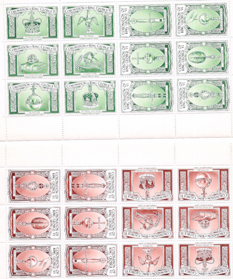 Great Britain 1937 Coronation Regalia Souvenir sheets comprising five sets of six sheets in the original folders and envelopes. Fine
