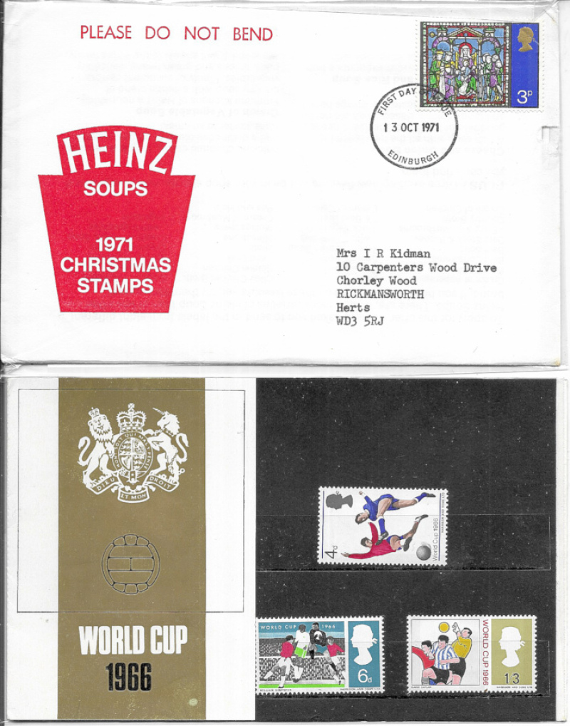 Great Britain 1964-1985 Presentation Pack selection comprising 1964 Churchill, 1966 World Cup, 1967 EFTA, 1969 Investiture (Welsh Pack), 1971 Heinz pack (in orig. FDC), and 1985 BBC Children in Need private pack. Also 2010 Classic Album Covers sheetlet UM