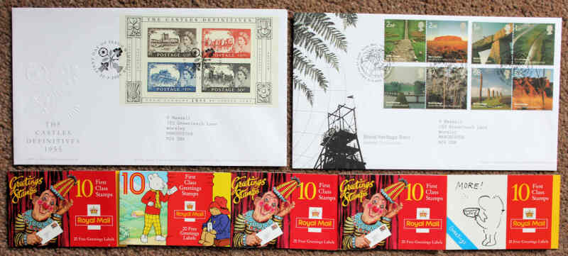 Great Britain 1985 to 2005 collection of Illustrated FDCs in six albums and loose, typed address, together with 28 Booklets including Prestige and Greetings types and some other UM incl. £10 Britannia. (100s)