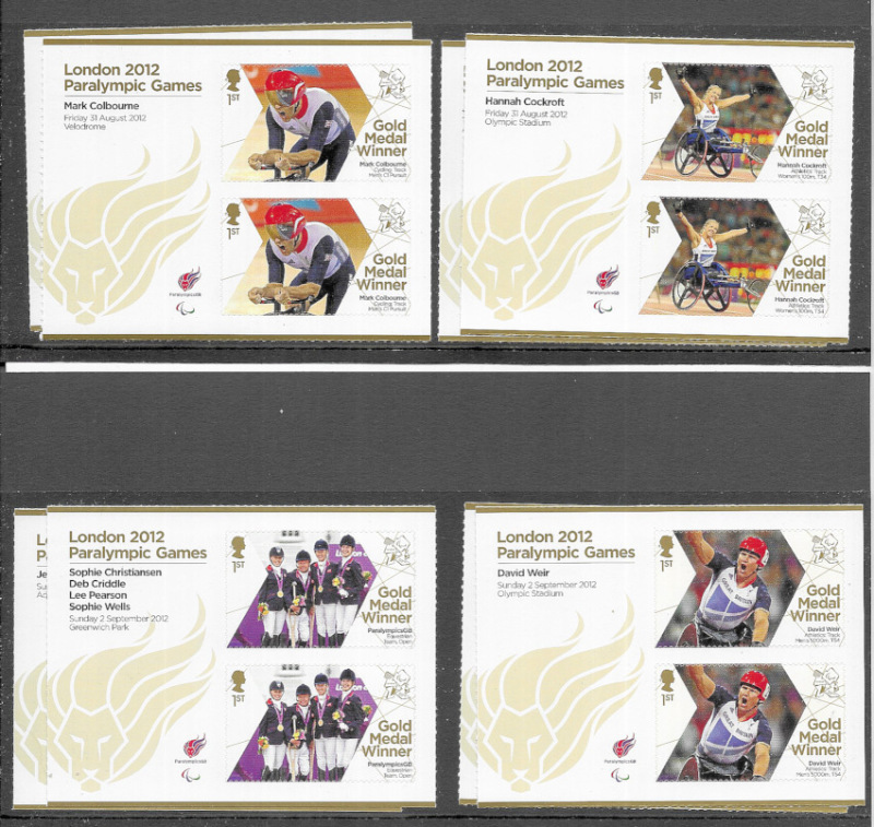 Great Britain 2012 Paralympic Games Booklet Panes mint, and the same on a set of fine Illustrated FDCs. Face value of the mint £115.60.