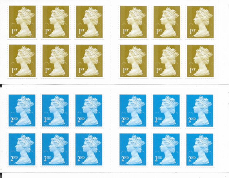 Great Britain Decimal booklets comprising First Class (3) and Second Class (11) self-adhesive stamps, 12 in each booklet.