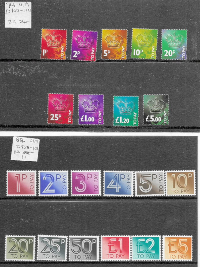 Great Britain QE2 Postage Dues UM comprising sets for 1959, 1968, 1970, 1982 (2 sets) and 1994.