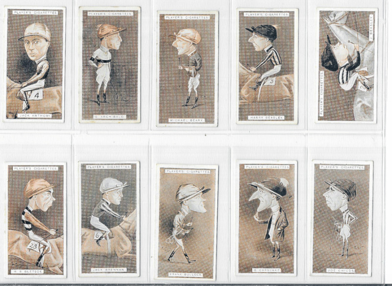 Horse-Racing sets comprising Ogden's Prominent Racehorses of 1933 and Steeplechase Trainers and Owners' Colours, both VG or better, mostly excellent; plus Player's Racing Caricatures good to fine.