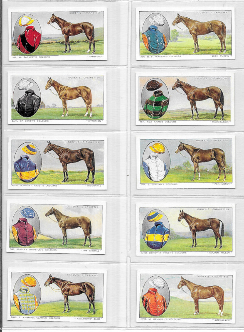 Horse-Racing sets comprising Ogden’s "Prominent Racehorses of 1933" and "Steeplechase Trainers and Owners’ Colours"