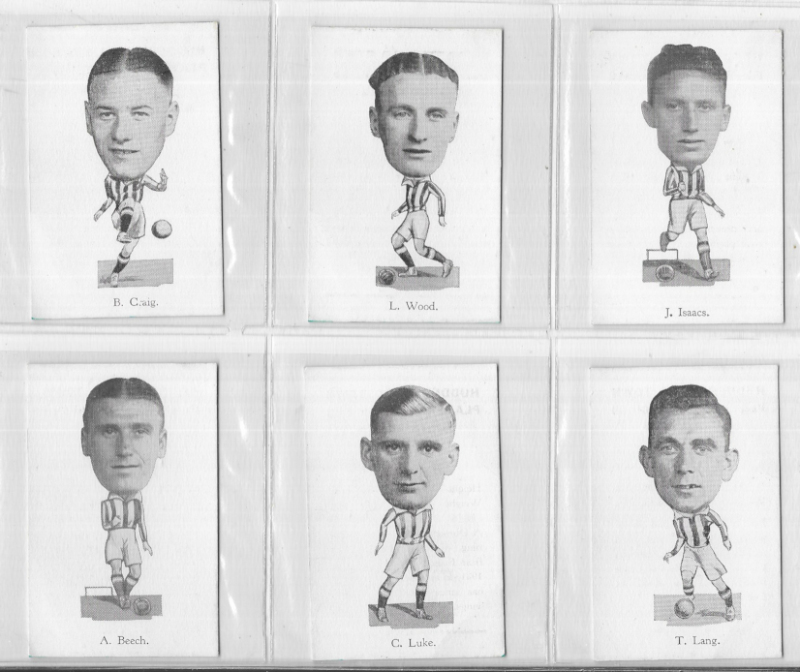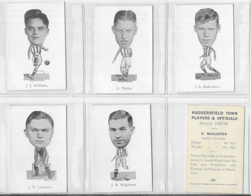 Huddersfield Town F.C. Huddersfield Town Players & Officials, Season 1935-36, 1935, the set of 37. Mostly VG to excellent, #4 & 16 with small creases. These were originally given away in pairs in the Huddersfield Town programmes. Rarely offered in a complete set