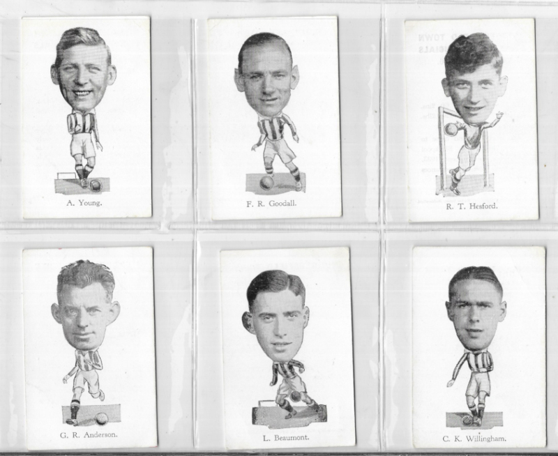 Huddersfield Town F.C. Huddersfield Town Players & Officials, Season 1935-36, 1935, the set of 37. Mostly VG to excellent, #4 & 16 with small creases. These were originally given away in pairs in the Huddersfield Town programmes. Rarely offered in a complete set