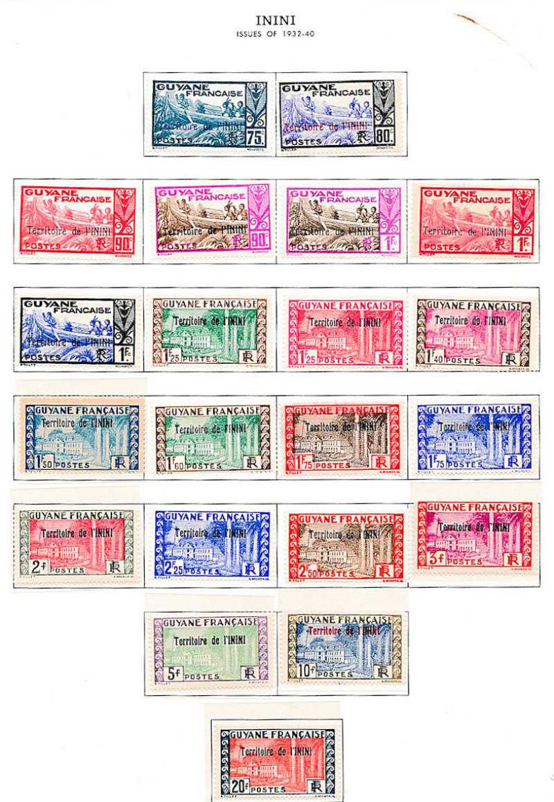 Inini (French Guiana) 1932-44 fine mint collection on printed leaves, some UM, complete (less 1937 MS). VG/VF. Cat £209 (71)