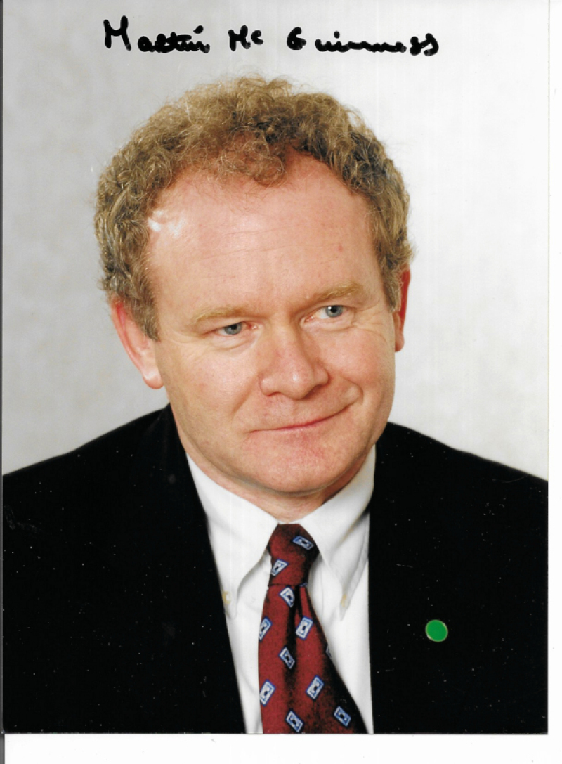 Irish Politicians, a collection of autographs including Eamon de Valera (signed page); signed photos of Albert Reynolds (2), Charles Haughey, Gerry Adams, Garret Fitzgerald, Mary Robinson, David Trimble, Ian Paisley, and Martin McGuinness; plus signed letters, pages & covers. VG/VF (25)