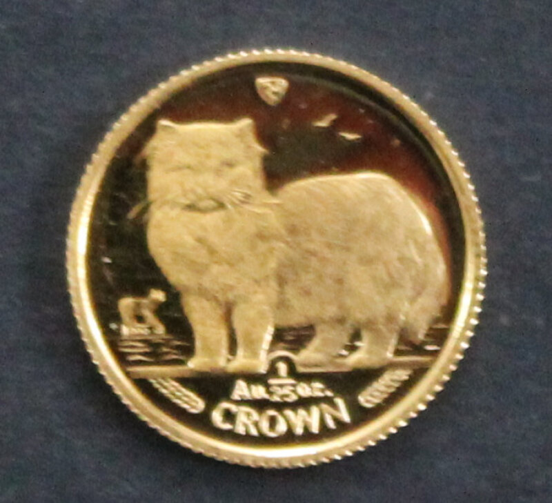 Isle of Man .999 Fine Gold Crown, 1989, Persian cat on verso, with proof finish.