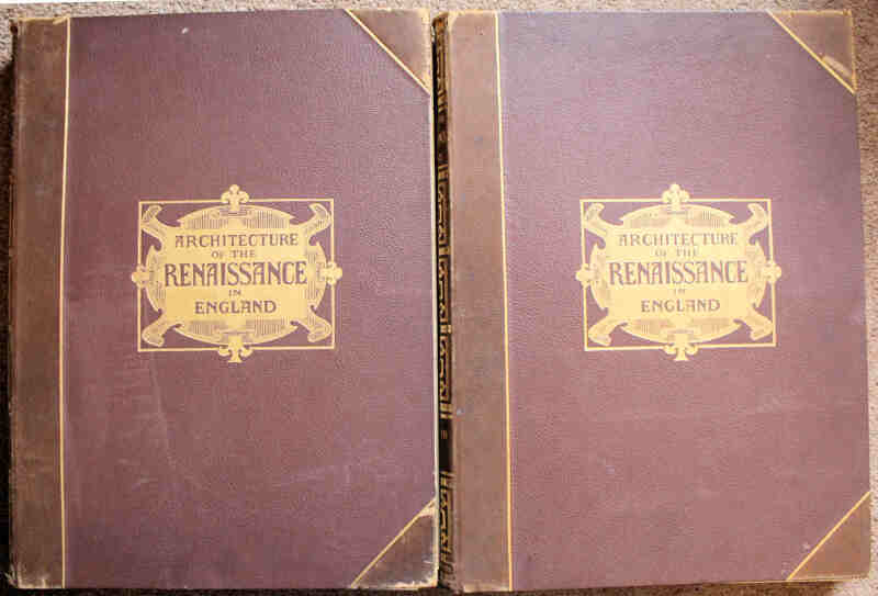 J. A. Gotch Architecture of the Renaissance in England, Batsford 1894, 2 vols, complete with 145 plates, folio, half-leather, gilt, text & plates loose, clean internally.