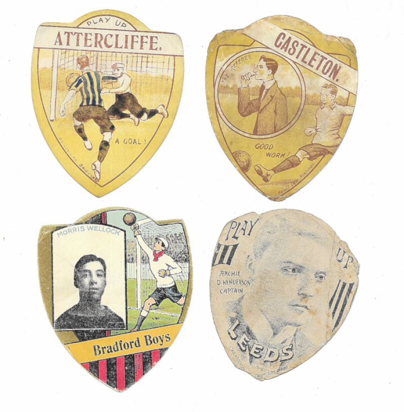 J. Baines – Football. Bradford City with inset of Peter Logan; Play Up Leeds with portrait of Archie Henderson; and five others of Yorkshire clubs. Mixed condition. (7)