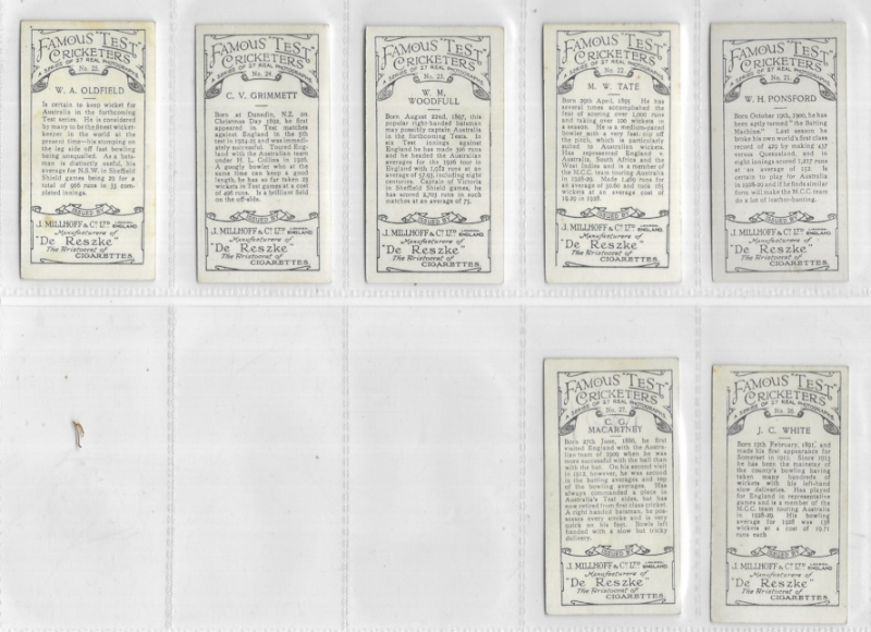 J. Millhoff & Co Famous Test Cricketers, 1928, standard size, the set of 27, excellent condition
