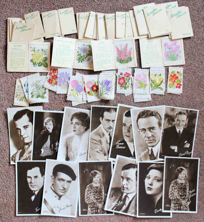 J. Wix Kensitas Flowers, an accumulation comprising small 1st series (87) and 2nd series (17), size ‘L' 1st series (26) and 2nd series (9), and one P size (Violet – Primrose), no high numbers amongst the second series. Also 24 without folders, and some oddments including qty. of Carreras Turf Sports and Footballers, and Sarony Cinema Stars PC size (13). Varied condition, many fine.