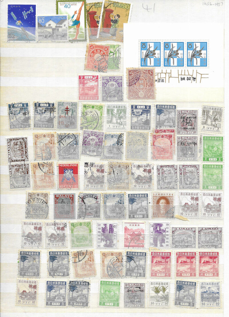 Japan 1900s to 1990s M&U accumulation on stockleaves & loose, including some WW2 occupied areas. Used predominate. (Many 100s)