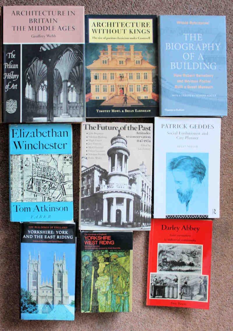 John Soane: Architect, Royal Academy 1999; Peters Darley Abbey 1974; Fawcett The Future of the Past – Attitudes to Conservation 1976, in d/jkt; Harris & Snodin Sir William Chambers 1996; Lewis The Pedestrian in the City 1965, in d/jkt; Meller Patrick Geddes – Social Evolutionist and City Planner 1993; Johnson-Marshall Rebuilding Cities 1966, in d/jkt; and others on architecture and urban history. (53)