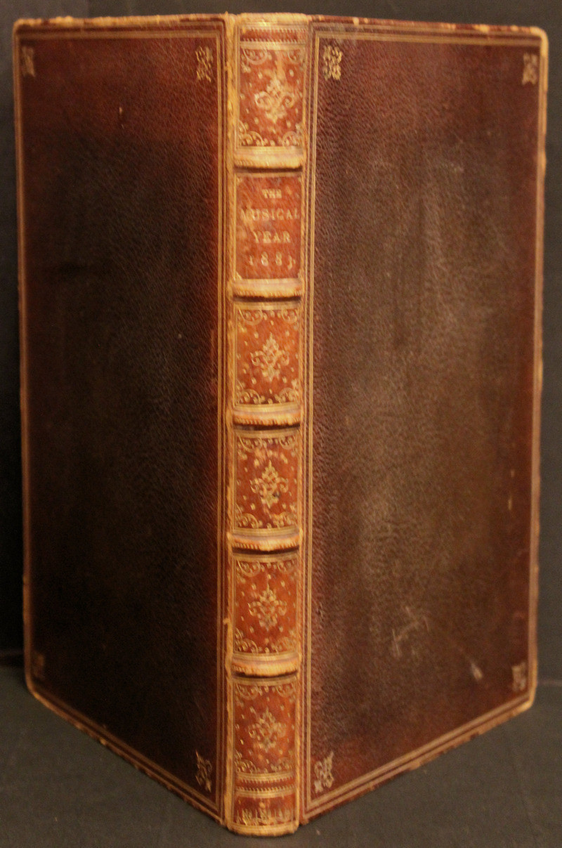 Joseph Bennett The Musical Year 1883: A record of noteworthy Musical events in the United Kingdom with a reprint of criticisms on many of them , Novello [1884], octavo, full morocco, gilt, with raised bands, gilt red compartments, a.e.g., bound by Zaehnsdorf, some wear, top of backstrip part-detached.
