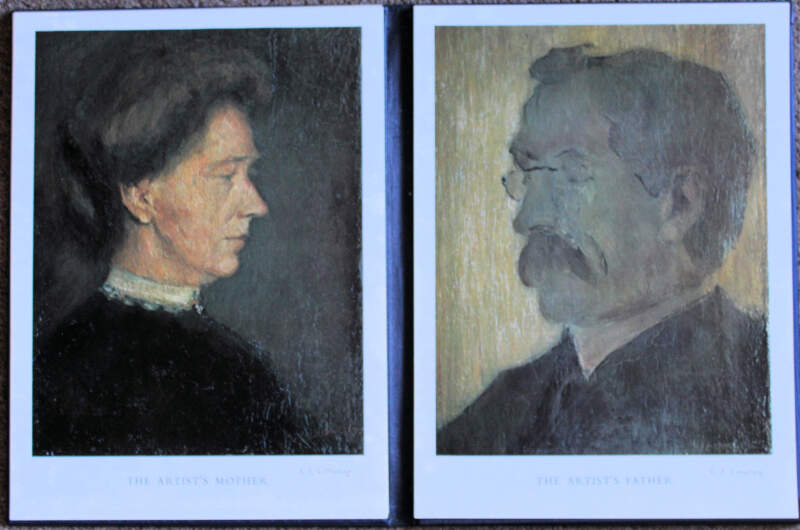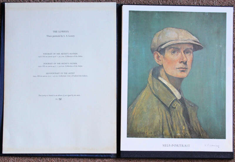 Laurence Stephen Lowry: The Lowrys 1975, comprising three prints Self-Portrait, The Artist's Mother and The Artist's Father, each signed by the artist in the lower margin, in the issued leather-bound portfolio, No.98 of 300 produced; together with a bronze medallion of Lowry by Leo Solomon in the issued case, similarly numbered No.98 of 300, with certificate. The margins of two of the prints show slight spotting.