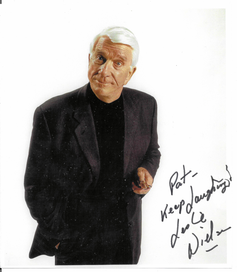Leslie Nielsen (1926-2010, star of the 'Naked Gun' and 'Airplane' movies): a fine autographed colour 9 x 7½” photograph, with dedication.