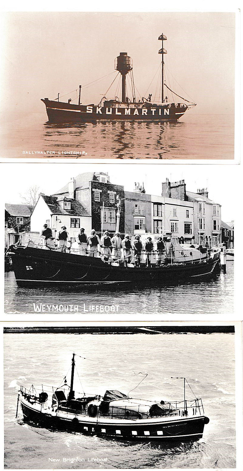 Lifeboats (10) 1900s to 1950s, the Thames fire float, and the Lightship Skulmartin at Ballywalter. Most are 1950s RPs. Good to VF (12)