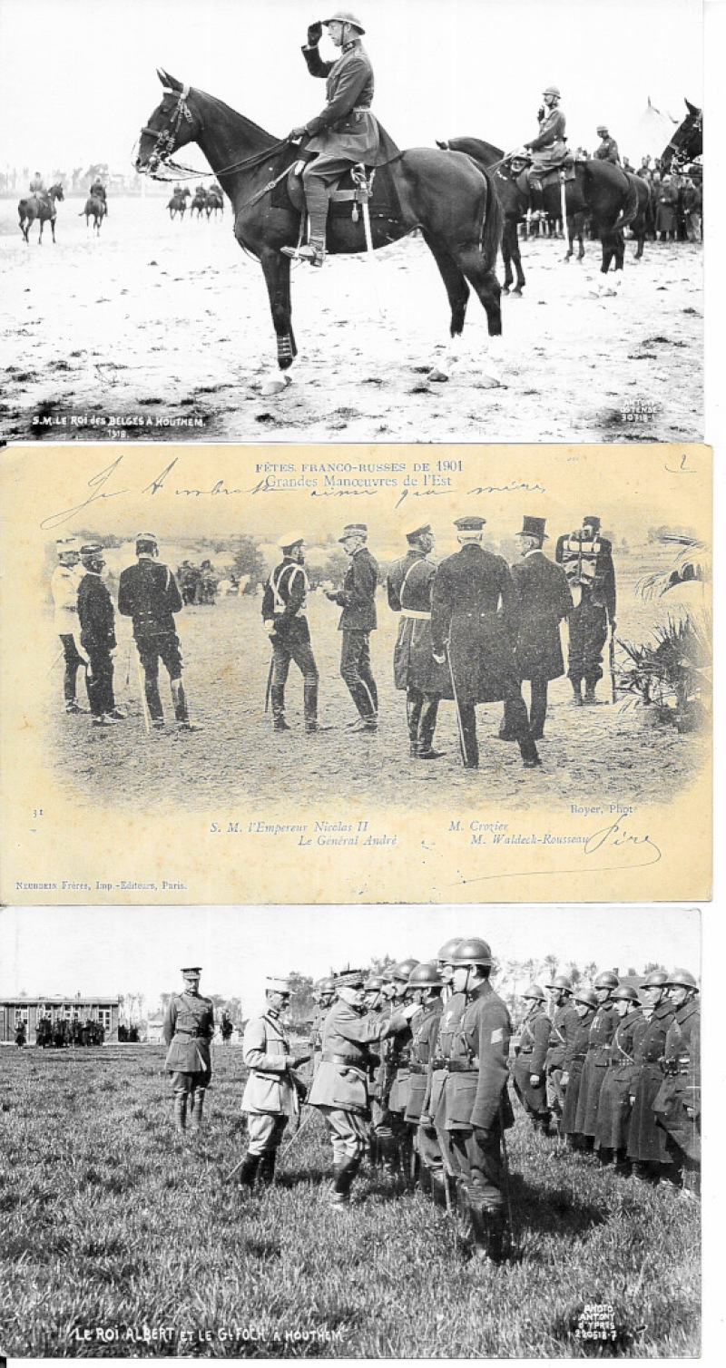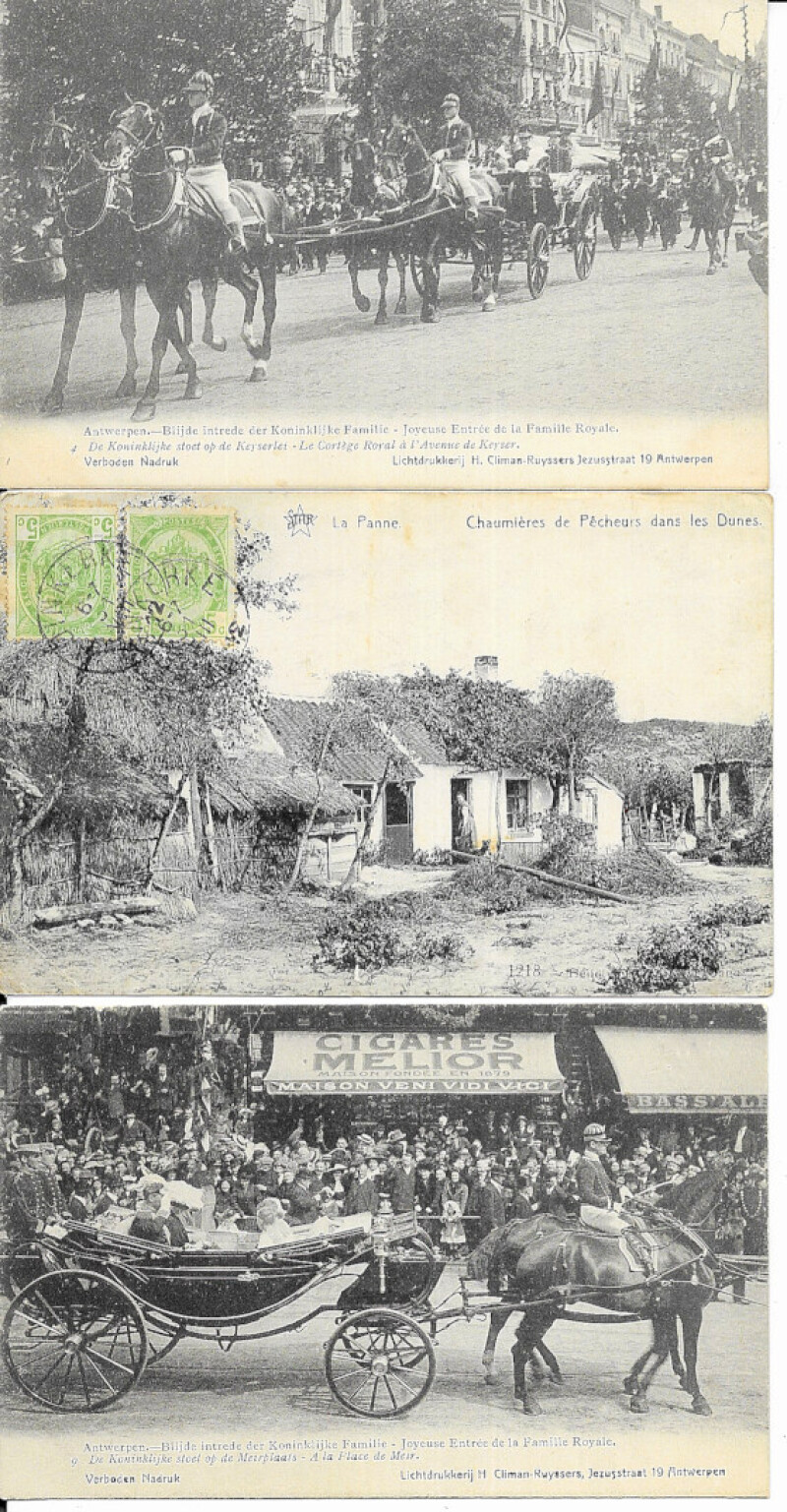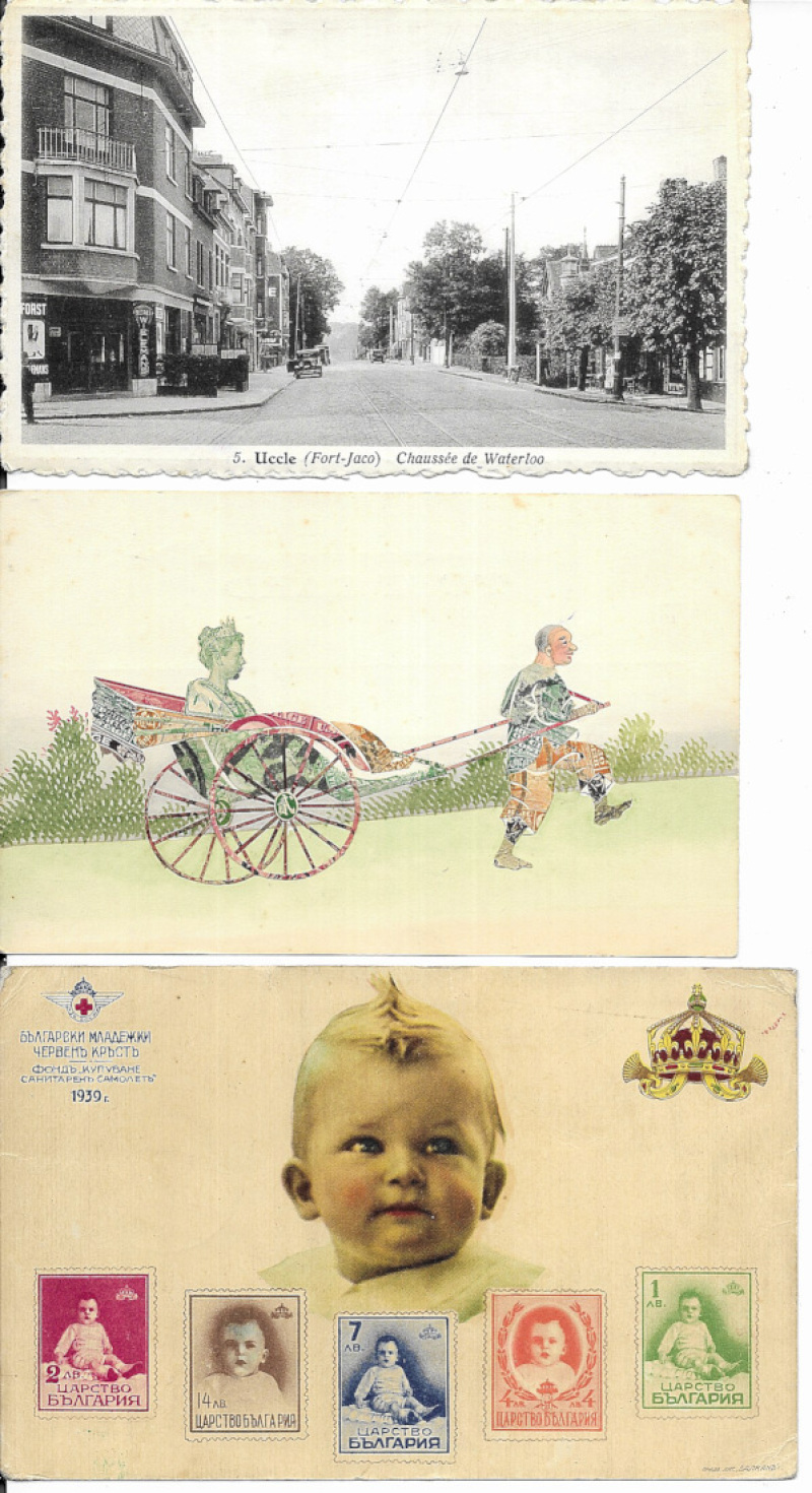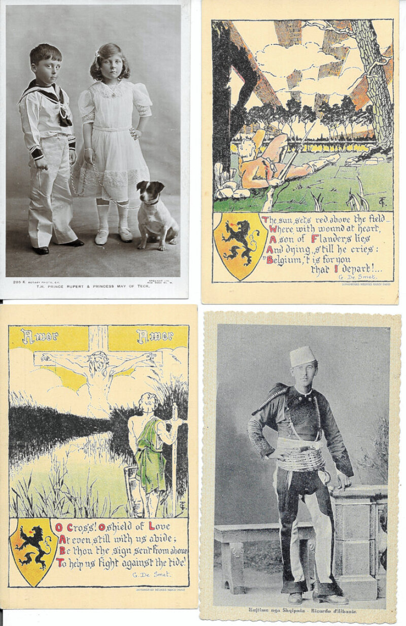 Mainly European with Belgian Royalty (30) especially Royal Visit to Antwerp, WWI troop inspections etc; the ruler of Albania; stamp montage; 1939 Bulgaria stamp card; WWI Belgian Patriotic (4), and various others. Fair to VF (101)