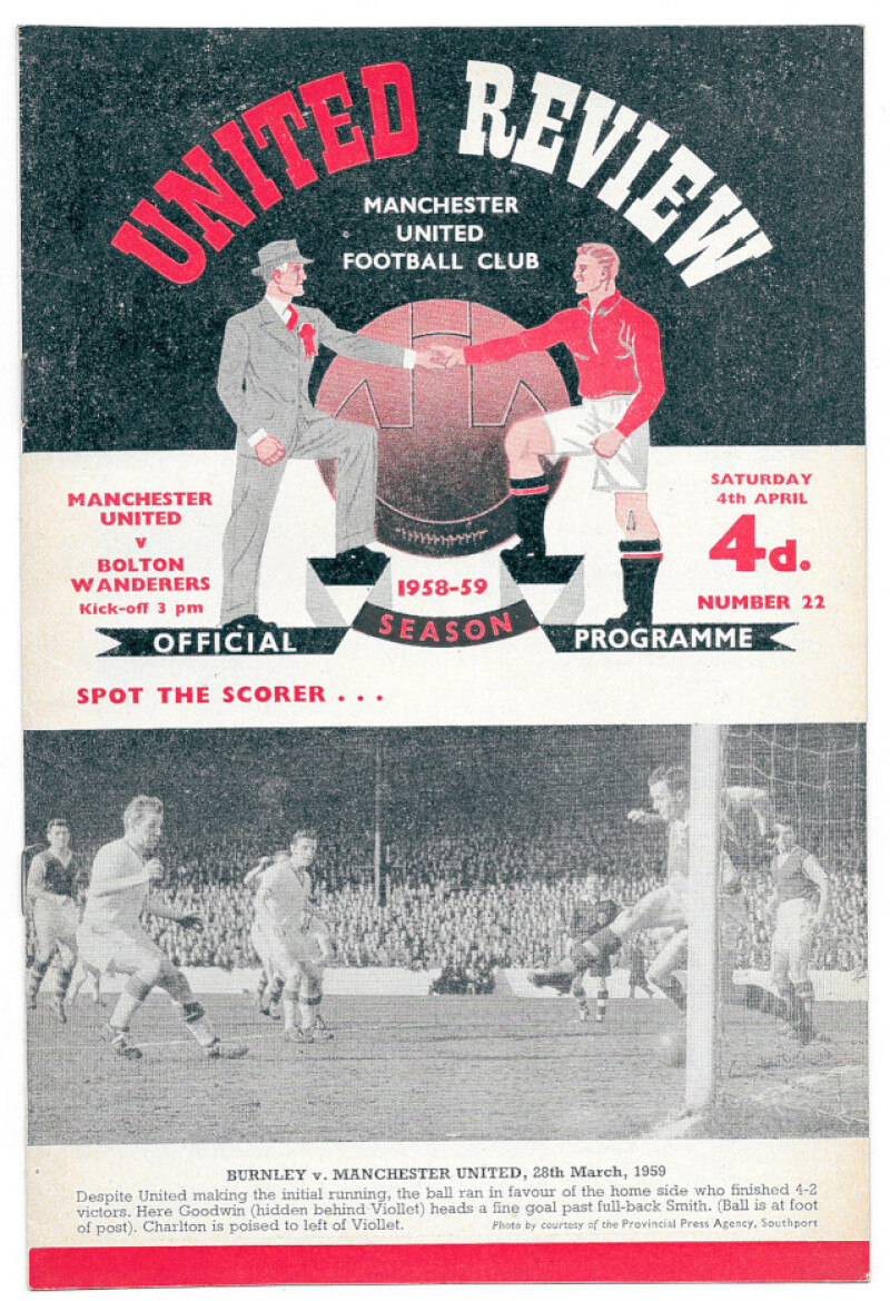 Manchester United 1958-59 Season home programmes, numbers 2-22 and 24, plus away programme at Leicester City. Tokens intact.