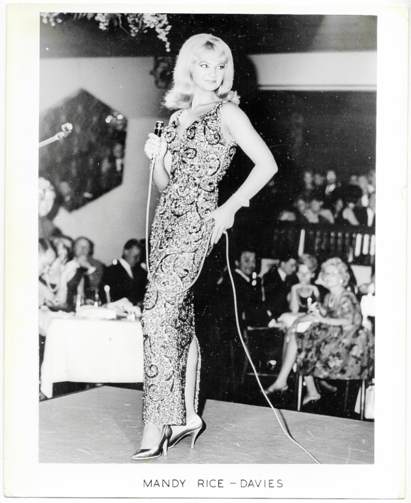 Mandy Rice-Davies (1944-2014); group of three fine original 10x8” photographs as a cabaret performer, 1960s. (3)