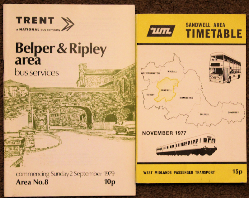 Midlands counties Bus Timetables 1960s/1970s, mostly Derbyshire, plus Notts, Walsall and Sandwell. Also few pamphlets. Good to VF. (10)