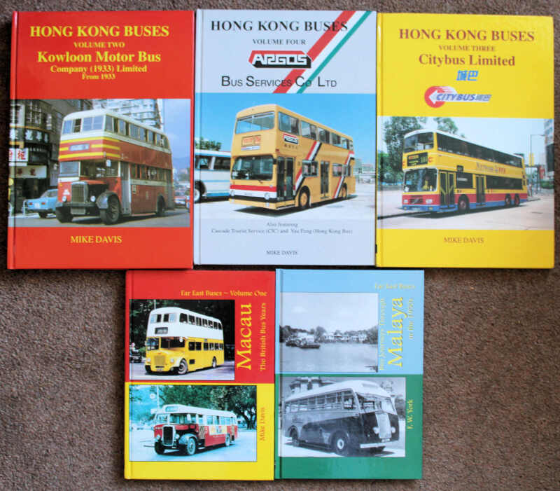 Mike Davis Hong Kong Buses, Vols.2, 3 and 4, 1995, and Far East Buses,Vol.1, Macau, 1996; plus F.W. York Bus Journeys Through Malaya in the 1950s, 2001. Pictorial boards. VF