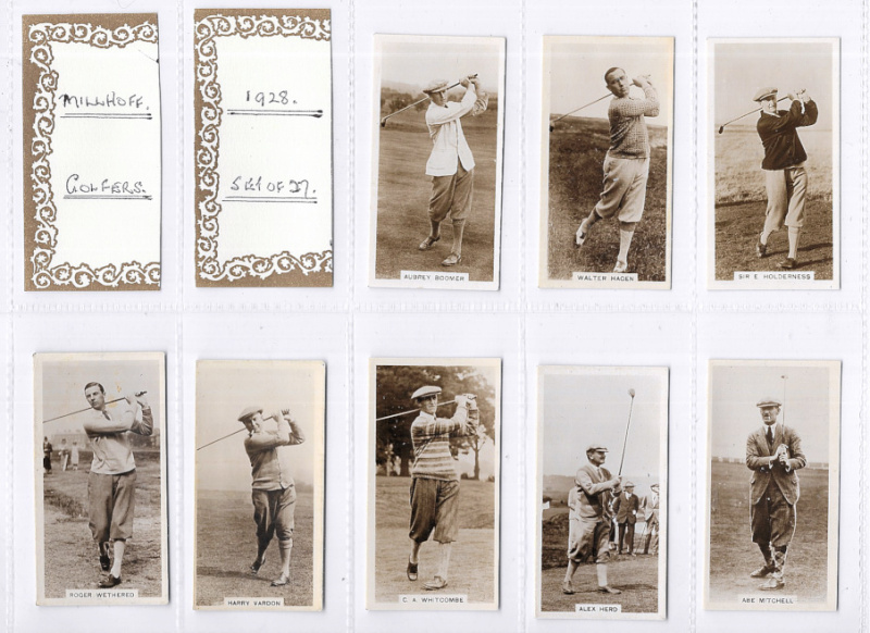 Millhoff Famous Golfers 1928, the set of 27, including Bobby Jones, Walter Hagen, etc; mostly excellent, Harry Vardon and Tommy Armour VG.