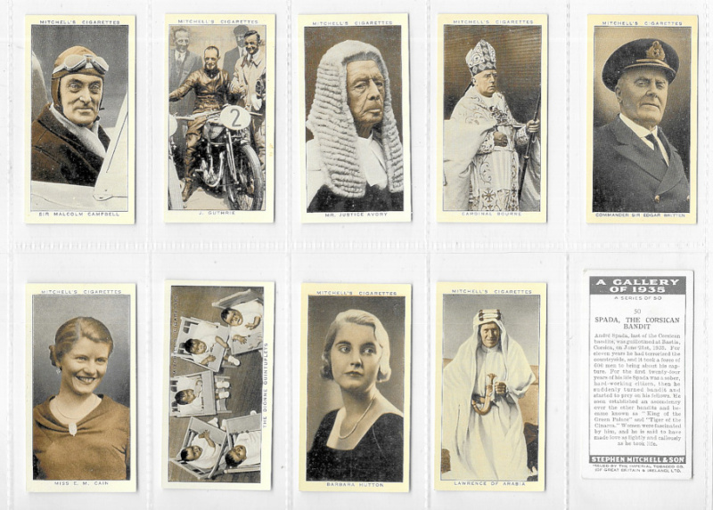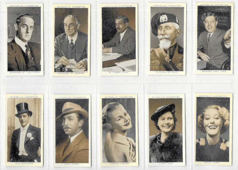 Mitchell "A Gallery of 1935", the set of 50, including Walt Disney, Lawrence of Arabia, Joe Louis, Vivien Leigh, Malcolm Campbell etc.