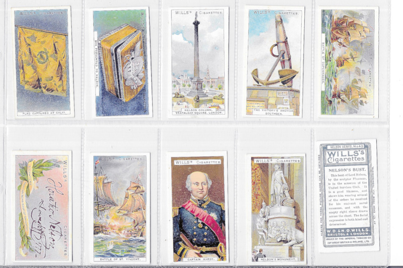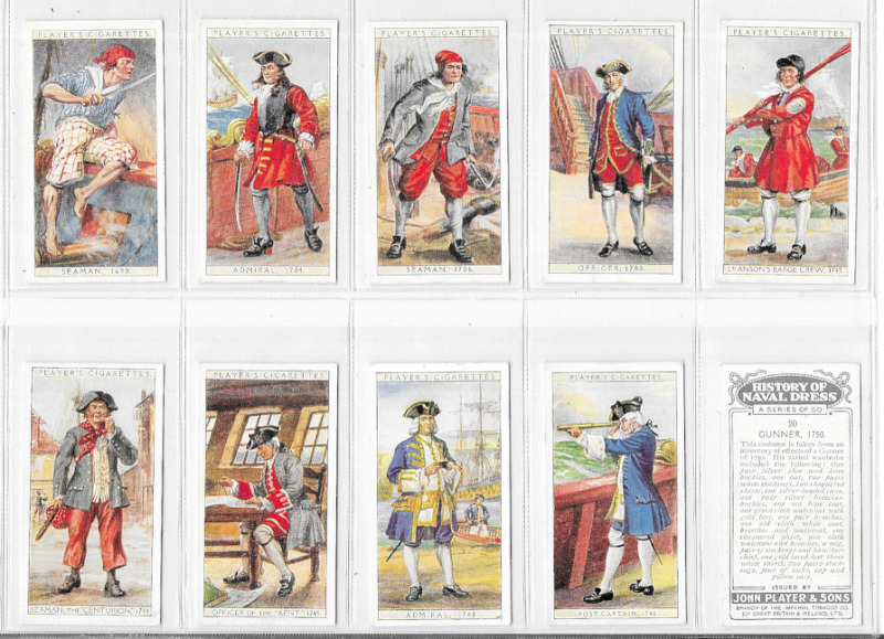 Naval interest, a selection of sets comprising Wills Nelson Series 1905 & Flags of the Empire first & second; and Player's History of Naval Dress, British Naval Craft & Old Naval Prints. Mostly VG/VF but Old Naval Prints fair to good. (6 sets)