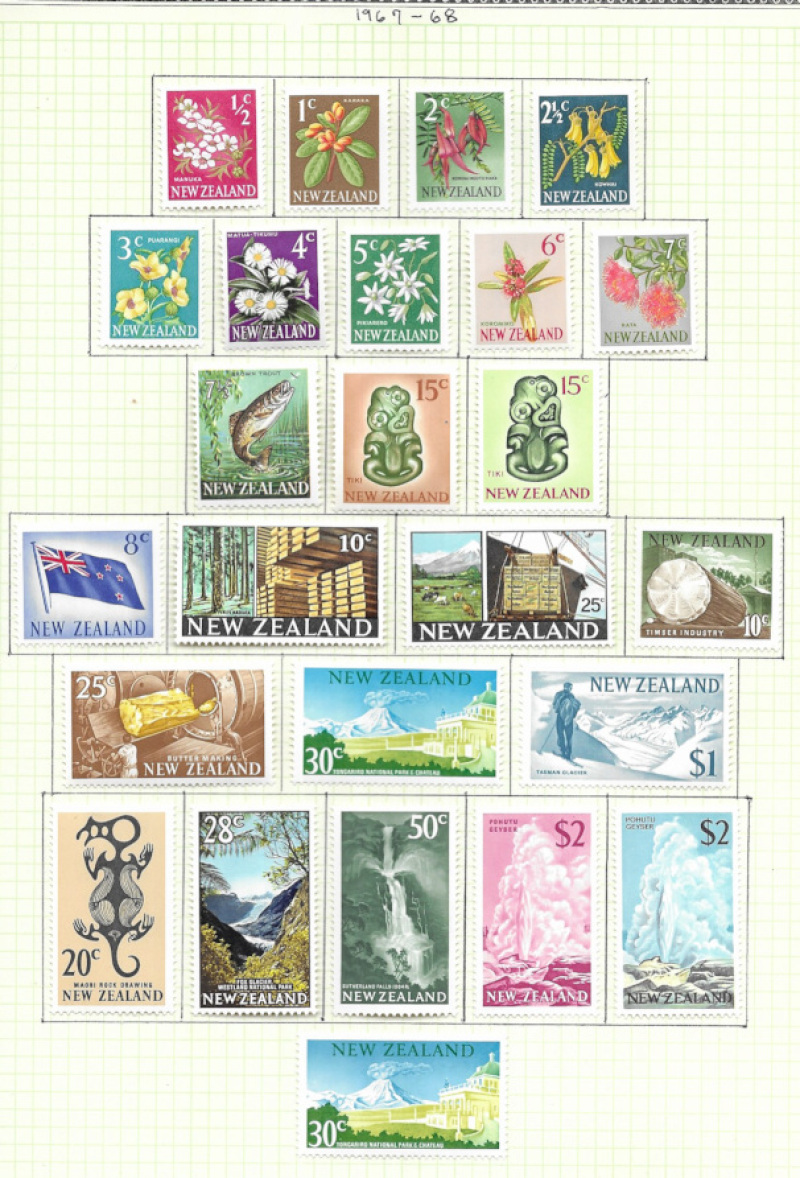 New Zealand QV/QE2 M&U ranges in binder to c.1998, with many GVI/QE2 sets to 10s & $2 to 1980s, the 1990s issues mostly used. (1,370 + 24MS)