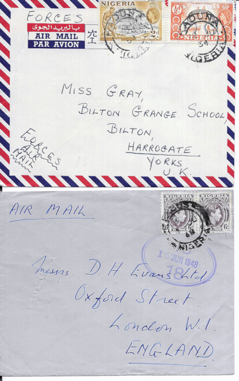 Nigeria 1936-57 Covers, mostly airmail to UK, various cancels and postal rates, fair to fine. 21 are GV/GVI period. (27)