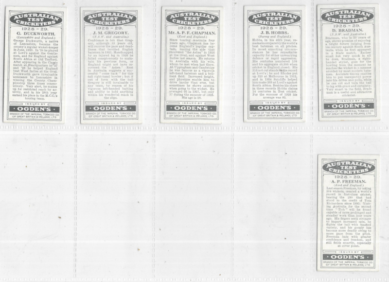 Ogden Australian Test Cricketers 1928-29, the set of 36, including Don Bradman. Excellent condition.