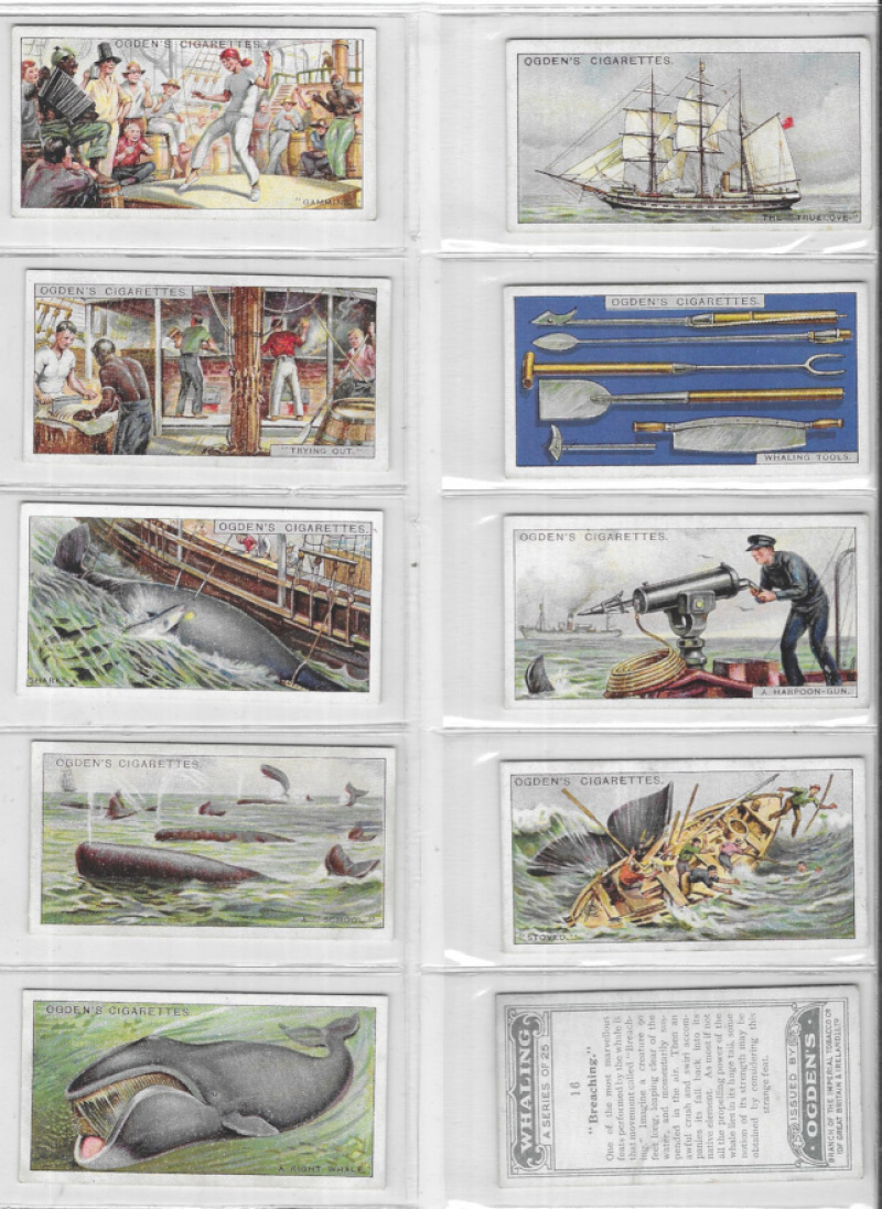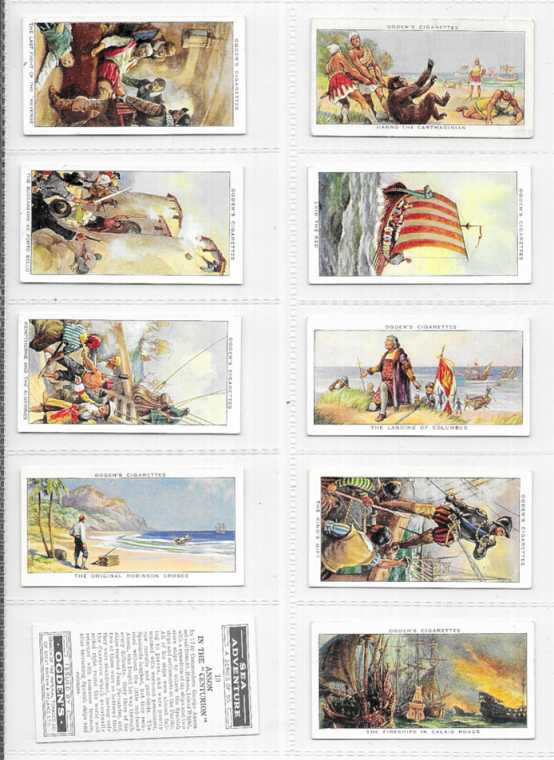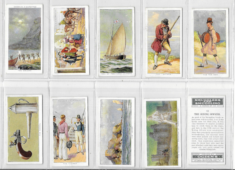 Ogden’s "Whaling", "Smugglers & Smuggling", "Sea Adventure", "Records of the World" & "Ocean Greyhounds", all in sets, VG or better, mostly excellent.