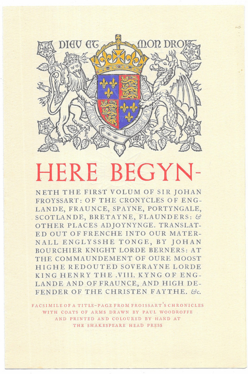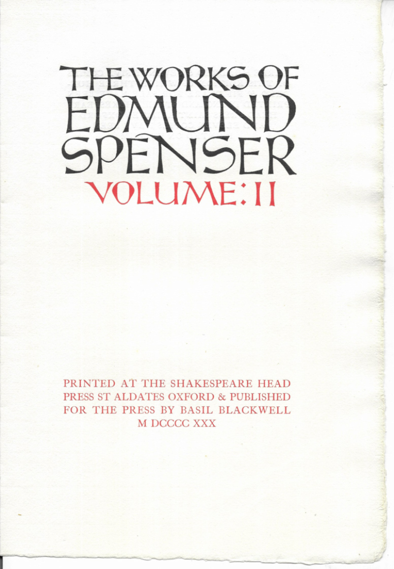 Pages of Books Printed at the Shakespeare Head Press St Aldates Oxford 1932, comprising 16 fine items in original rather worn wrapper, including letter head, Works of Edmund Spenser and Geoffrey Chaucer, etc.