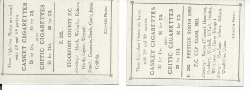 Pattreiouex Ltd Football Teams 1922, size L, Preston North End and Stockport County, VG/Fine (2)